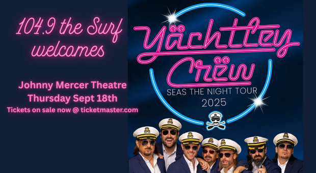Yachtley Crew – Seas The Night Tour When Sep 18th, 2025 8:30pm - 11:45pm Where 301 W Oglethorpe AveSavannahGA31401 The worlds #1 Yacht Rock Band is bringing their Seas The Night Tour to Johnny Mercer Theatre this fall! Sep 18, 2025, 8:30 PM Johnny Mercer Theatre, 301 W Oglethorpe Ave, Savannah More Info CLICK HERE