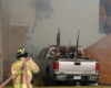 Police officers walked amid the burned out ruins of a Church of Jesus Christ of Latter-day Saints church in Michigan on Monday, a day after a former Marine opened fire during a crowded service, killing at least four people, then set the building ablaze.